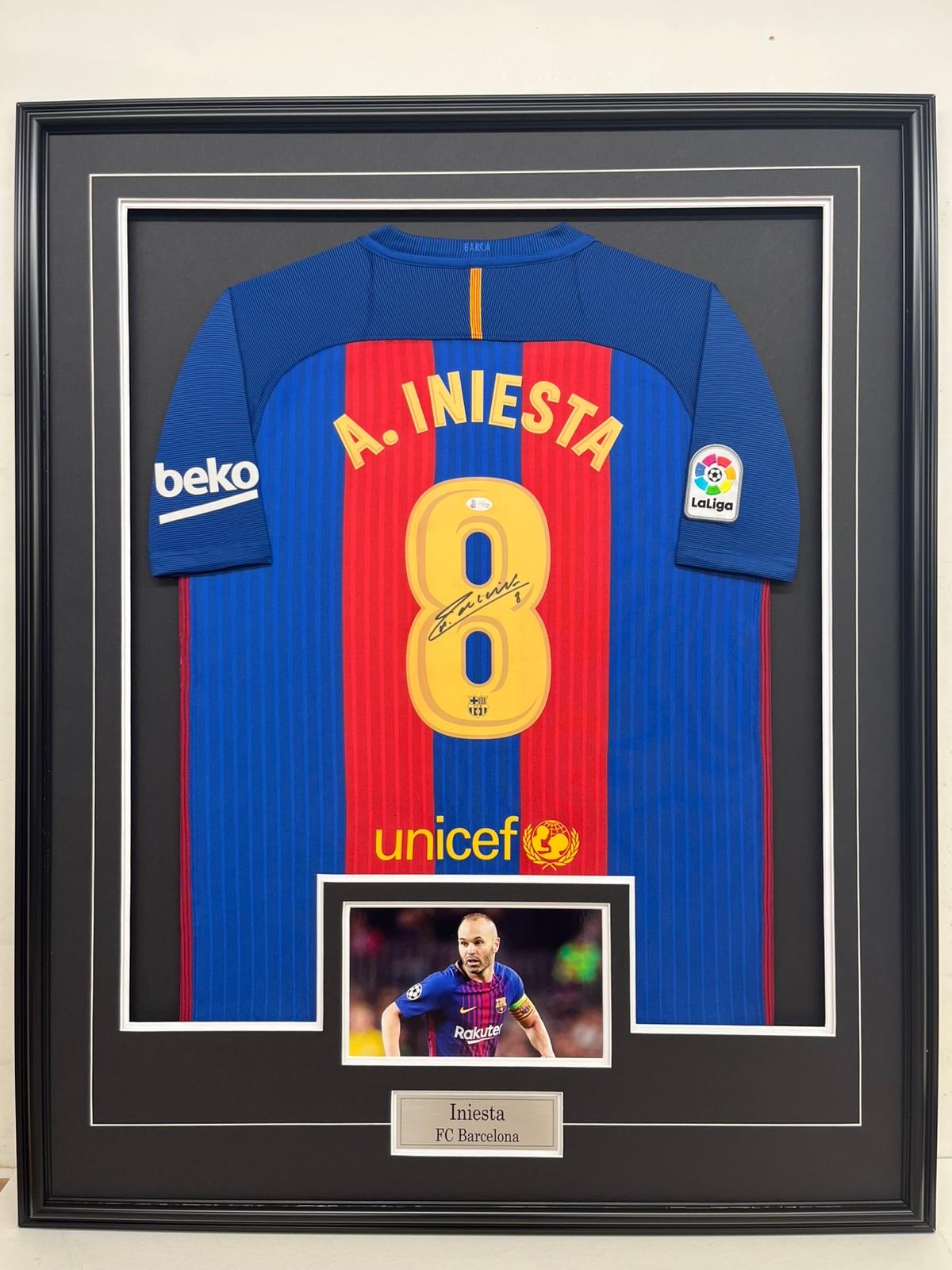 Iniesta – FC Barcelona – Framed Autographed Jersey