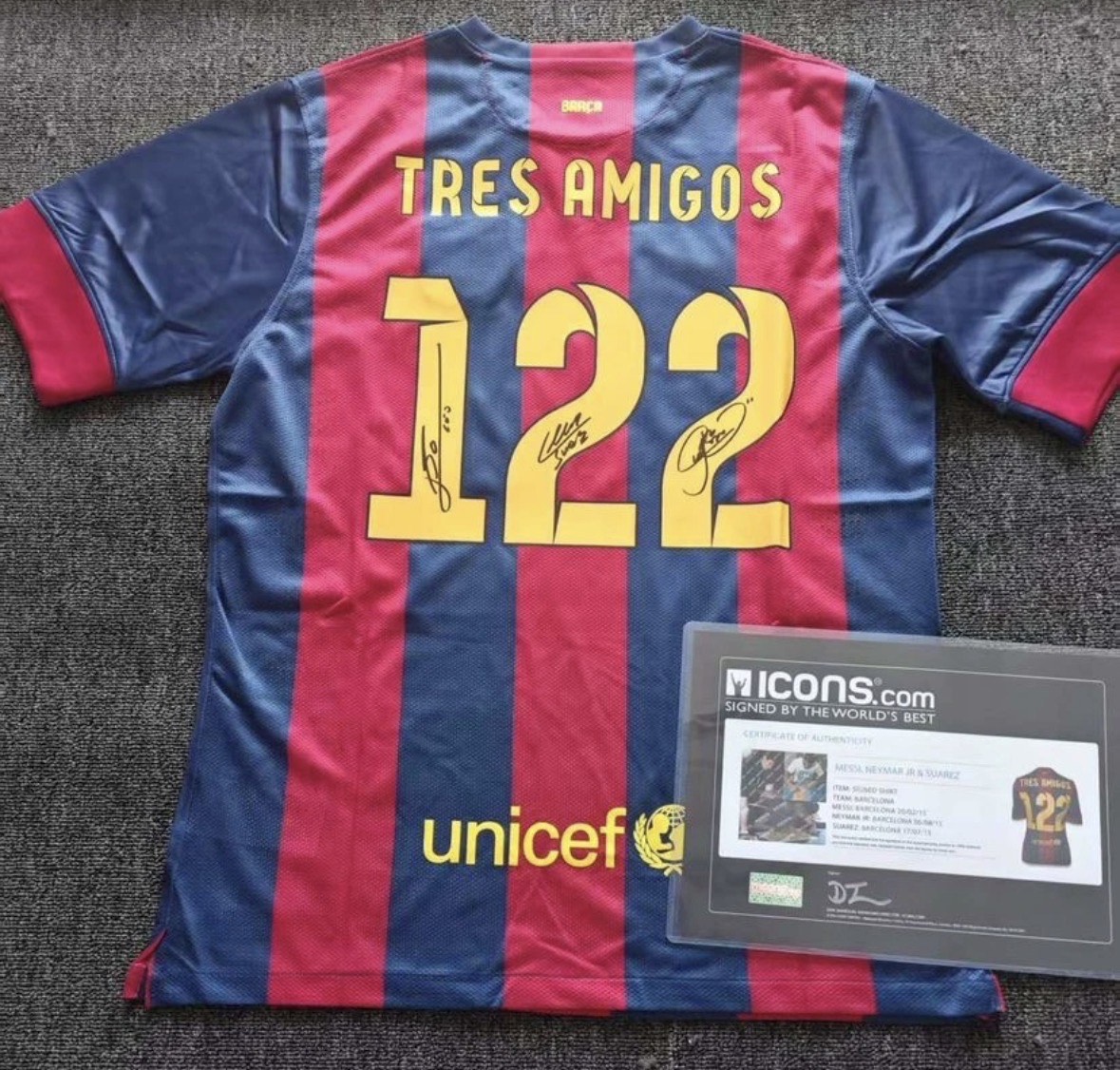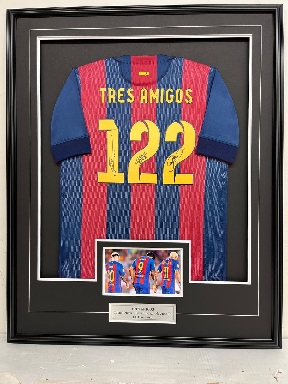Lionel Messi – FC Barcelona – 2014-2015 – MSN Line (Messi, Suarez, Neymar) – Framed Autographed Jersey